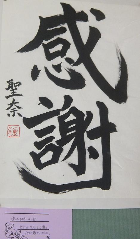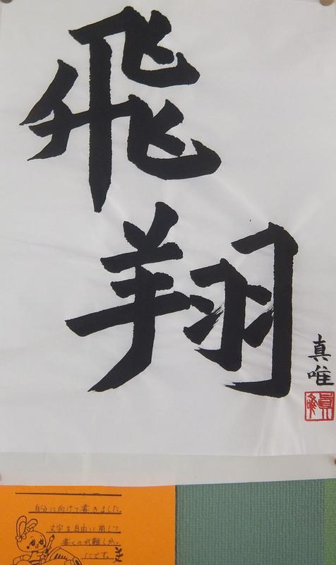 書道室前の廊下に掲示してある生徒作品が新しくなりました。言葉や書の持つ力強さを感じさせてくれる作品です。
