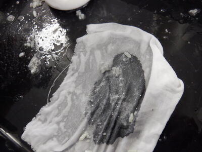 ご飯粒を使った場合、墨汁が周囲に広がらないことがわかりました。