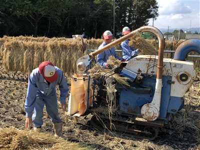 南稜米・旭一号の脱穀 投稿日時 : 2018/10/17 学校サイト管理者 10月17日(水)、竿干しで乾燥をさせていた南稜米と旭一号を脱穀しました。 コンバインとハーベスタを用いて行いました。役割分担をしてスムーズに実習を行います。 これにて稲刈り作業も一段落。よけまんに南稜米と丸尾米の食べ比べです。どちらが勝ったかは・・・内緒です(笑)。