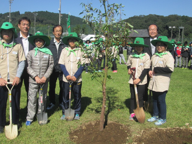・人吉球磨地域植樹祭(2018/10/13) 投稿日時 : 2018/10/14 学校サイト管理者 ・人吉球磨地域植樹祭(2018/10/13)10月13日(土)球磨村総合運動公園で、人吉球磨地域植樹祭が行われ、林業奨学会の堀川会長らが参加。緑の少年団11団体などが参加して、クスノキ、ツバキ、サザンカの植樹をしました。堀川会長 クスノキを植樹緑の少年団 と一緒に参加者全員で、ツバキ と サザンカを植樹