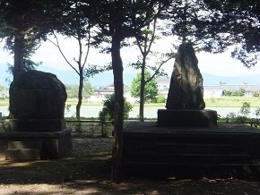 によると明治38年に建立した記念碑の石材があまりに硬くて碑文