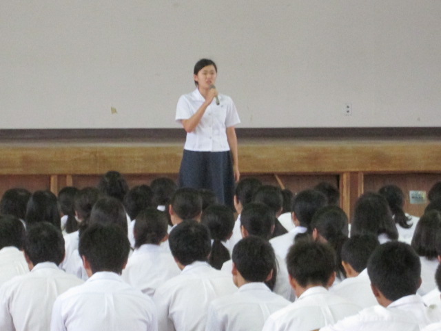 ・体育大会 全校集会(2017/9/20) 投稿日時 : 2017/09/20 学校サイト管理者 ・体育大会 全校集会(2017/9/20)9月20日(水)6限目、体育大会 全校集会を行いました。最初に、生徒会長の戸澤さんがあいさつ。大会スローガン「一致団結~私たちが作る新しい地平線~」について話しました。体育科からの説明後、各団に分かれて団別集会を行いました。