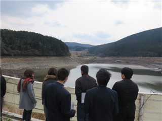 見学した場所は、農地被害現場(阿蘇市)、橋梁下部工工事現場(阿蘇市)、大切畑ダム(ため池)(西原村)、鼻ぐり