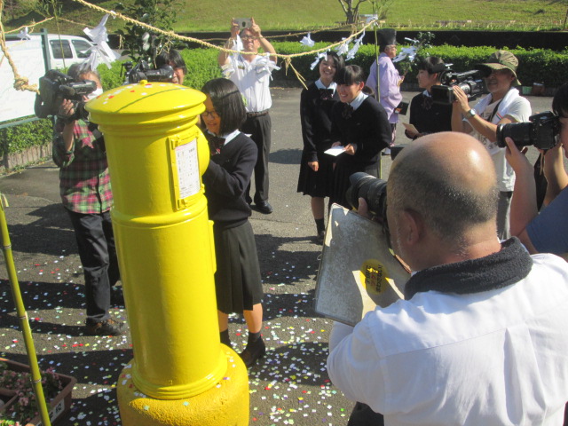 ・ふうせんかずら幸福祈願(2018/10/3) 投稿日時 : 2018/10/04 学校サイト管理者 ・ふうせんかずら幸福祈願(2018/10/3)10月3日(水)おかどめ幸福駅で、生活経営科2年生らが、ふうせんかずらの幸福を祈願しました。フウセンカズラの手紙を幸せの黄色いポストへ
