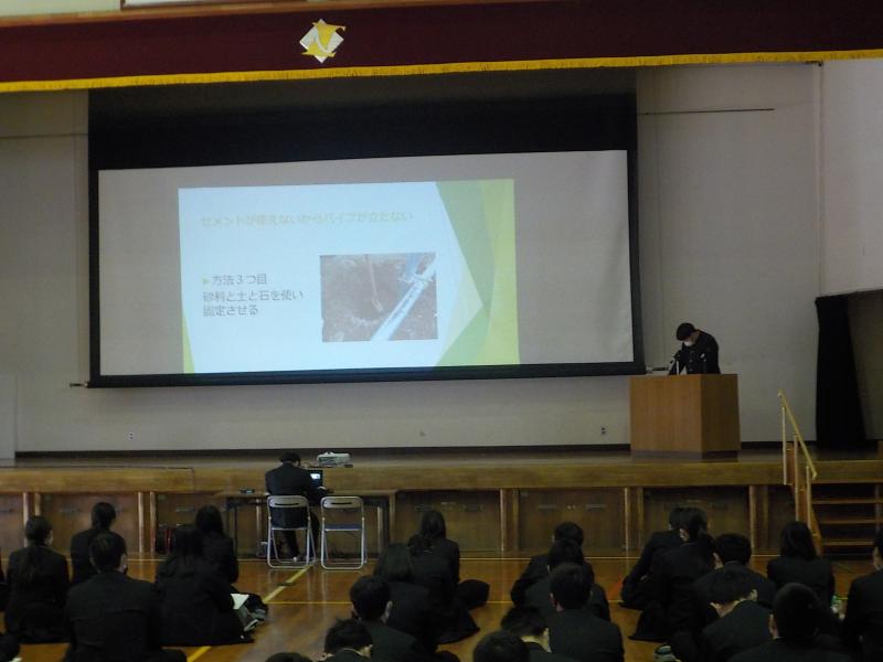 3年総合農業科 課題研究発表会 投稿日時 : 2021/01/25 作成者1 1月22日(金)に3年総合農業科の生徒による課題研究発表会が行われました。3年生が1年間取り組んだ課題研究の盛果をPowerPointで発表しました。1・2年生も真剣に聴いており充実したものだったのではないかと思います。