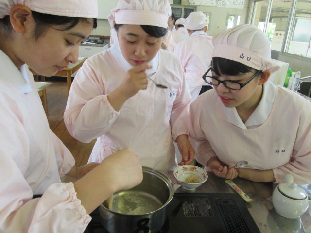 ・公開授業 家庭科 生活と福祉 (2017/6/15) 投稿日時 : 2017/06/15 学校サイト管理者 ・公開授業 家庭科 生活と福祉 (2017/6/15)6月15日(木)、3年生活経営科を対象に、西口先生が、食事の介護、食事の工夫を題材に、実習をとおして、重湯(おもゆ)と葛湯(くずゆ)を調理し、介護食・離乳食をつくる実践的な態度を身につけました。