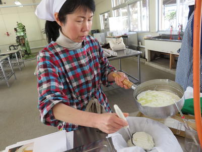 モッツァレラチーズを作りました!(2019/1/25) 投稿日時 : 2019/01/25 投稿者4 ・モッツァレラチーズ作り(聴講生制度) 牛乳を温めて酵素を加えると・・・ 見事に固まりました!温度管理が大切です。 凝固した乳タンパクの水気を切ってひとまとめにし、 熱湯に浸す→折りたたむように練る、を繰り返すと・・・ ボソボソだった固まりがつるんと滑らかに、そして伸びるようになりました! 初めてとは思えないほど、きれいに仕上がりました。美味しく召し上がってください!