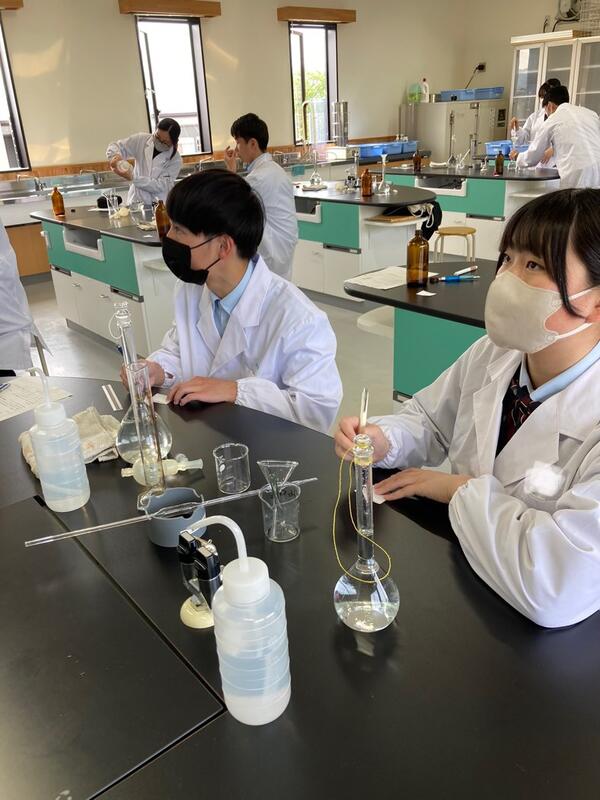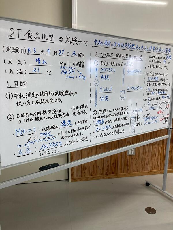【食品科学科2年生】4.27食品化学基礎実験 投稿日時 : 2023/04/27 投稿者5 2先生は、火曜日と木曜日の5,6限目に食品製造実習班と食品化学実験班に分かれて授業を展開します。先日25日にいちごジャムを製造した班が本日食品化学を学び、25日に食品化学を学んだ班が本日いちごジャム製造実習を行います。食品科学科ではこのようにクラスを分割し少人数化する等、1つ1つの授業を手厚く行っています。 本日行われた食品化学の授業をご覧ください。 2年生の食品化学は令和5年度赴任された福井先生が授業を行います。 タグ 食品科学科