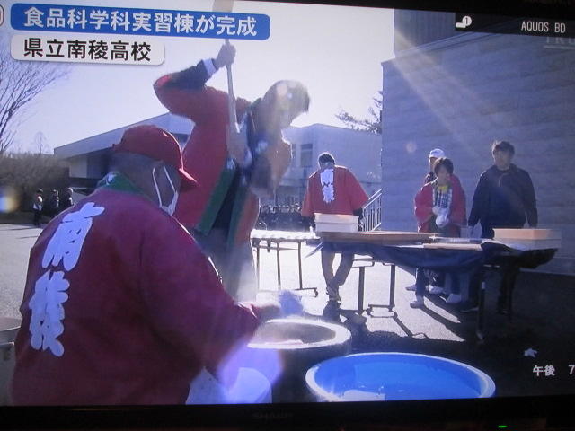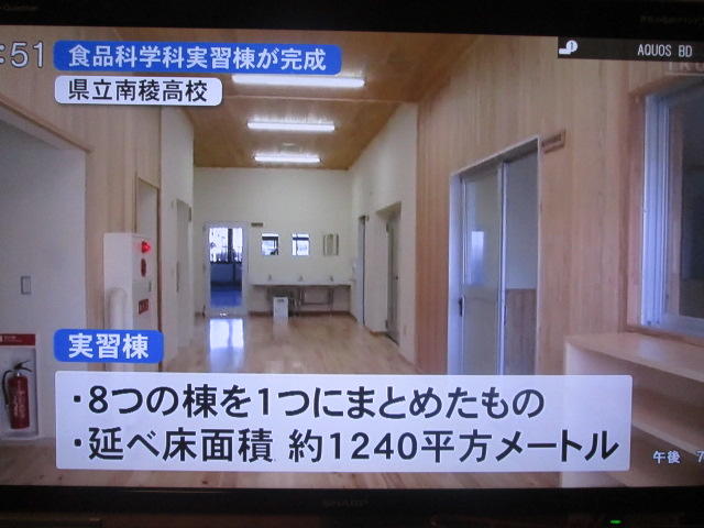 TKUテレビ熊本放送(2019/2/8) 投稿日時 : 2019/02/09 学校サイト管理者 TKUテレビ熊本の2月8日のニュースで、実習棟が完成したことが放送されました。 南稜高校の実習棟が完成 球磨郡あさぎり町の県立南稜高校に九州一の規模となる食品科学科実習棟がこのほど完成しました。新しい実習棟はこれまでの実験室など8棟を一つにまとめたもので、延べ床面積約1240平方メートル、学校の演習林の木材が使われています。竣工式では生徒を代表して日岡真優さんが「安心・安全な生産物を届けられる実習をしていきます」と述べ、餅をついて完成を祝いました。