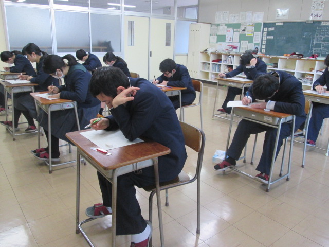 ・最後の3年学年末考査 (2018/1/25) 投稿日時 : 2018/01/25 学校サイト管理者 ・最後の3年学年末考査 (2018/1/25)1月25日(木)から1月30日(火)までの4日間が、高校生活最後の学年末考査です。写真は1限目の様子です。
