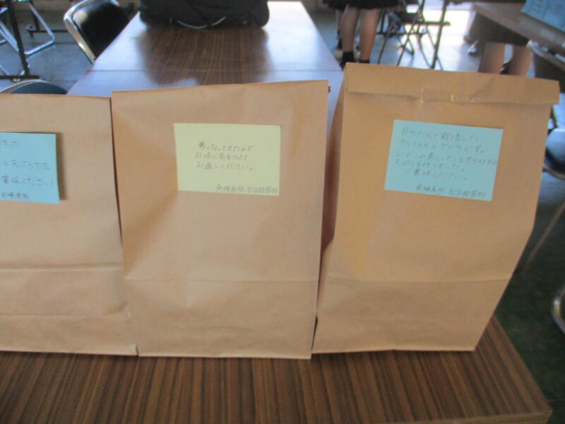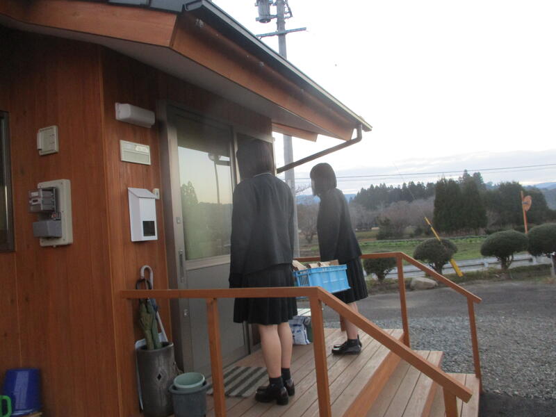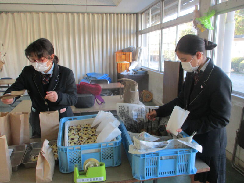 仮設住宅訪問【生活経営科3年農業班】 投稿日時 : 2021/12/16 投稿者2 自分たちで栽培、加工したサツマイモとレーズンを食材に「サツマイモの天ぷら」、「レーズン入り蒸しパン」を作り、1年生の「球磨農林学」で作った「柚子こしょう」とともにで仮設住宅へ届けました。 メッセージカードも書きました。 袋づめして準備完了 人吉市の仮設住宅を訪問し、真心を届けました。