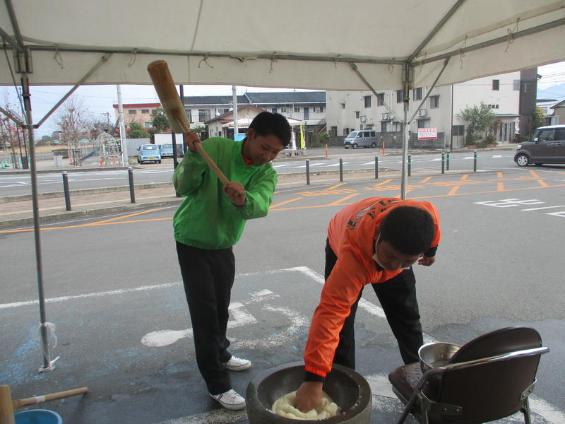 JAくまチャリティ餅つき 投稿日時 : 2019/12/21 投稿者2 毎年恒例となりましたJAくまチャリティ餅つきに総合農業科、生活経営科の生徒が参加しました。 杵を使った餅つきは見た目以上に体力勝負です。 熱いつき立て餅を丸めるのも大変でした。 シクラメン、ポインセチア、葉ボタン、トマト、卵も販売しました。 最後においしいカラーライスを頂きました。 本日の益金はくま川鉄道及び本校の教育活動のために寄付されるそうです。JAくまの皆様ありがとうございます。