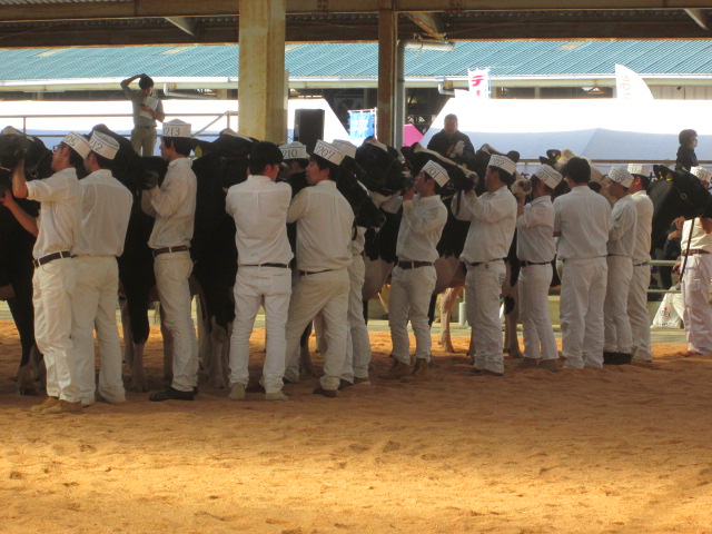 ・オール九州ブラック&ホワイトショウ(2018/3/4) 投稿日時 : 2018/03/04 学校サイト管理者 ・オール九州ブラック&ホワイトショウ(2018/3/4)3月4日(日)熊本県家畜市場でオール九州ブラック&ホワイトショウが行われました。3年生産科学科小田君、1年総合農業科1組尾前さん、総合農業科2組立山君、食品科学科丸山さんの4名が参加し、「かのん」と「アポロ」が出場。九州各県の農家や農業高校から出場。鹿屋農業、高鍋農業、市来農業、都城農業、諫早農業、島原農業、熊本農業、菊池農業などなど。2頭とも全国大会出場が決まりました。出場した牛を、審査し、順位に並べていきます丸山さん(左)と尾前さん9カ月以上12カ月未満 首席の「かのん」いよいよアポロの出場です。引き方のアドバイス審査開始です審査員が審査しています審査委員が1頭、1頭審査し、移動させますリードマンを務めた立山君(左)と小田君「かのん」が第2部「名誉賞首席」 「アポロ」が第12部「名誉賞三席」を受賞しました