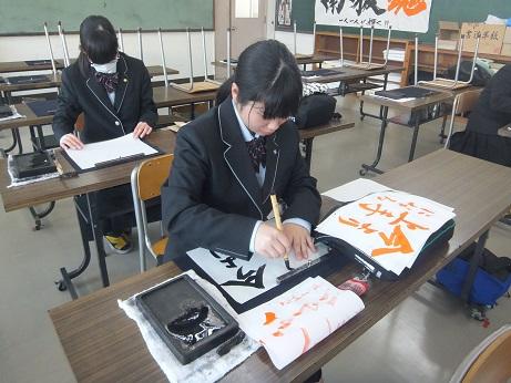 書道部の生徒が放課後に活動を行っています。今日は今年1年間の目標を書き上げていました。綺麗な字が書けるということはとても素敵なことですね。