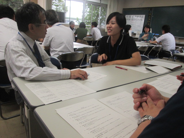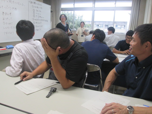 ・心のきずなを深めるモデルプログラム職員研修(第2回) (2018/9/26) 投稿日時 : 2018/09/27 学校サイト管理者 ・心のきずなを深めるモデルプログラム職員研修(第2回) (2018/9/26)9月26日(水)心のきずなを深めるモデルプログラム 職員研修(第2回)を実施しました。8月31日(金)の第1回研修の続きです。講師は、スクールカウンセラーの原田先生、田中先生、小沢先生。授業のねらいである、①「ピア・サポート」や「ゲートキーパー」の意義や役割について理解し、生徒同士で、様々な困りごと悩み事を共有し合うことで支え合える集団をつくることの大切さに気付くことができる。②「話を聴くスキル」を身に付け、他者の話を聴き、受け止めることの大切さを理解し、日頃の生活に活かすことができる。を、どのように授業化していくか、受講者が生徒役になって研修を進めていきました。室長や保健委員会を中心に、これまでピア・サポート研修に取り組んできており、授業では、その生徒らがピア・サポートやゲート・キーパーの意義や役割、「話を聴くスキル」を伝達し、実際に話を聴くワークを行っていきます。ワークを通して、そのスキルの習得と、他者の話を受け止めることの大切さについて理解を深めさせていきます。