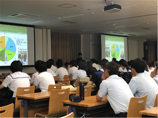 SPH 鹿児島大学オープンキャンパス 投稿日時 : 2018/08/07 投稿者2 8月5日(日)に、SPHの就農塾の分野で、鹿児島大学のオープンキャンパスに参加してきました。 2年生中心のメンバーで参加しましたが、参加した「参加してよかった」「ためになりました」という意見を述べてました。昼休憩の時には、大学に在学している先輩によるキャンパスライフの紹介もあり、大学への進学に対する意識向上にもつながったのではないかと思います。 これを機に、進路選択の一つに『4年制大学への進学』という言葉が上がってくる生徒が増えることも期待します。 鹿児島大学農学部の入り口イメージキャラクター『さっつん』のお出迎えもありました。 参加生徒が一堂に集まっての農学部の説明 在学中の先輩によるキャンパスライフの紹介醸造の講義。味ではなくにおいだけの体験でした 南国フルーツの酸度、糖度測定。まだ勉強中のmolなど難しい言葉に困惑してました 土と水についての講義では、水の流量について実験してました。他校の生徒と協力して行なってました。他にも、鶏の解体実習や、桜島への散策の体験学習もありました。この中から大学生になる生徒が出ることを期待しています。