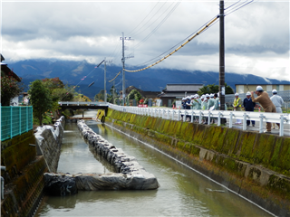 行いました。百太郎溝地区基線水利施設ストックマネジメント事業の現場において、現在も使っている水路の