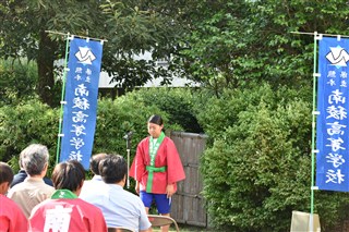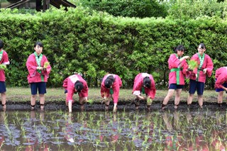 南稜三福田御田植祭 投稿日時 : 2018/06/13 学校サイト管理者 本年度も南稜三福田において校長、教頭、農場長、育友会役員、生徒会役員、農業クラブ役員、家庭クラブ役員による御田植祭を開催しました。御田植祭とは、日本人の主食であるお米の苗を植えるにあたり、実り多くあるように祈願するお祭りです。