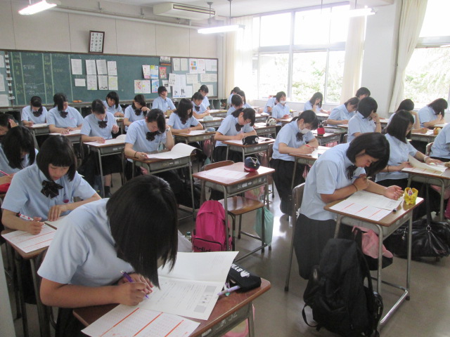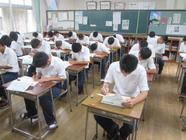 ・「進路Day1」 (2017/6/14) 投稿日時 : 2017/06/14 学校サイト管理者 ・「進路Day1」 (2017/6/14)6月14日(水)は、「進路Day1」。3年生は、1~4限目が、農水共通テスト。1、2年生は、1限目に職業レディネステストを行いました。さらに、3年生は、5限目に「先達に学ぶ会」、6限目に進路LHRを実施します。写真は、1・2年の職業レディネステスト、3年の農水共通テストの様子。