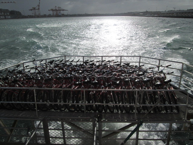 スワン川を下っていきます 船の後部には、ロットネスト島で乗る自転車が積まれています