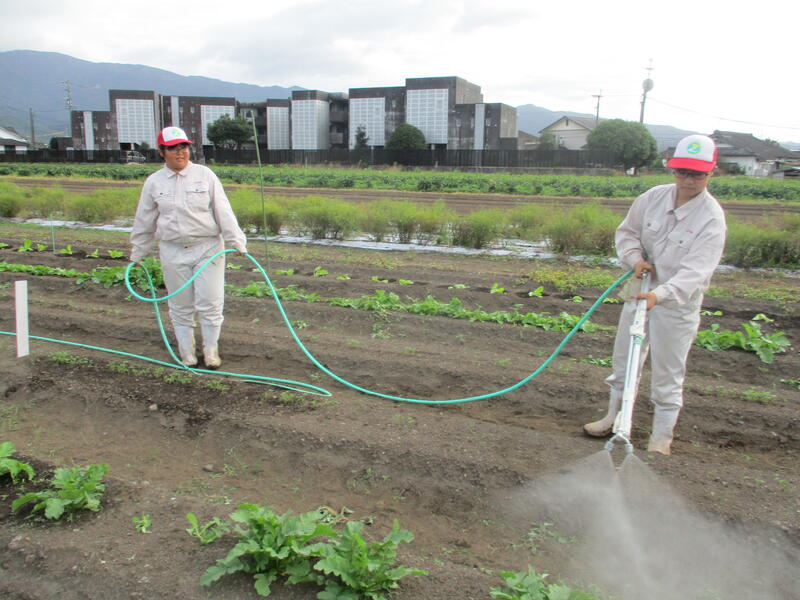フルボ酸が葉菜類、根菜類に及ぼす効果の研究【総合農業科1年 農業と環境】 投稿日時 : 2021/09/29 投稿者2 フルボ酸が葉菜類、根菜類にどのような効果を与えるか研究するため、ダイコン、ニンジン、ハクサイ、キャベツに2000倍に希釈したフルボ酸を散布しました。 フルボ酸とは、植物などが微生物により分解される最終生成物で、 腐植物質 のうち、酸によって沈殿しない無定形高分子有機酸です。 土壌や天然水中に広く分布しています。 今後も定期的にフルボ酸を散布し、処理区と無処理区の比較実験に取り組みます。