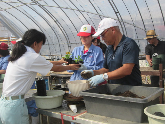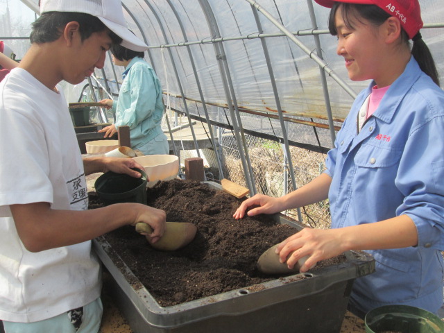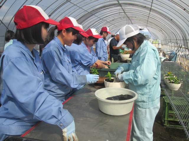 ・球磨支援学校との交流会 (2018/10/3) 投稿日時 : 2018/10/04 学校サイト管理者 ・球磨支援学校との交流会 (2018/10/3)10月3日(水)園芸科学科3年生の草花専攻の生徒らが、球磨支援学校で、花の寄せ植えを一緒に行い、交流を深めました。(掲載している写真は球磨支援学校の了解を得ています。)