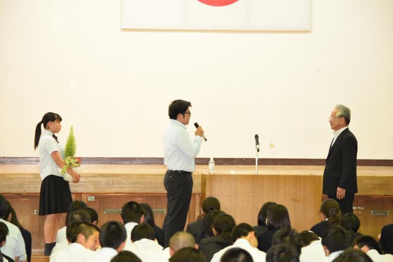 創立記念講演 投稿日時 : 2019/05/23 学校サイト管理者 今日で中間考査が終わりました。 午後からは同窓会会長の鶴田正巳様を講師に創立記念講演が行われました。 今までの経験や地域の方々を紹介しながら大変わかりやすい講演でしたが、「人にかけた情けは水に流し、人に受けた恩は石に刻む」という言葉はとても印象的でした。 自分自身どうだろう、と考えさせられる貴重な講演でした。鶴田様、本当にありがとうございました。