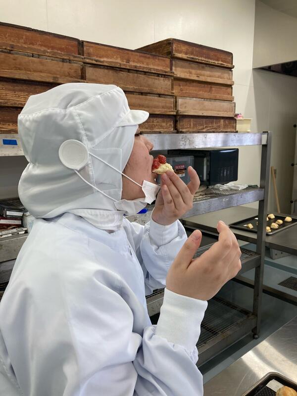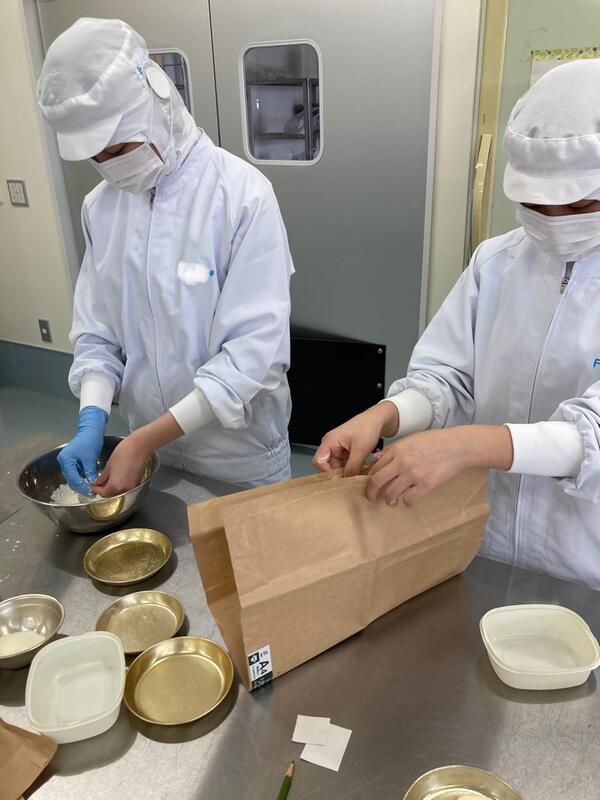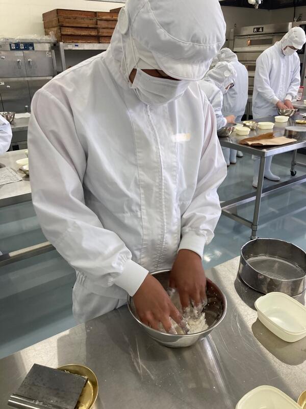 【食品科学科2年生】おいしいスコーン製造 投稿日時 : 2023/05/02 投稿者5 今日の5、6時間目に食品製造の授業でスコーンの製造実習を行いました実習後や放課後には先日、市岡いちご園にて収穫、そして製造したいちごジャムをスコーンにつけて試食をしました自分たちで製造したものを「おいしい」と言って食べる生徒の姿に嬉しい気持ちになりました今日の様子をご覧ください 放課後スコーンにいちごジャムをのせて試食し「おいしいっ」と笑顔を見せてくれました タグ 食品科学科