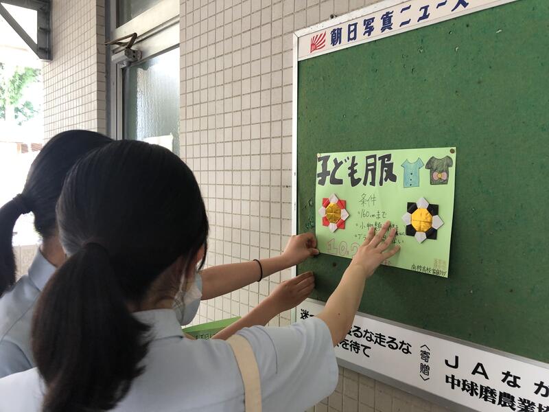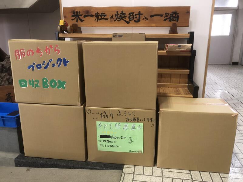 学校の職員室などに段ボールを設置し、全校生徒や先生方から子ども服を集めました。