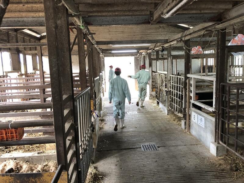 ウシをとおす通路は事前に片付けておく必要があることを学びます。