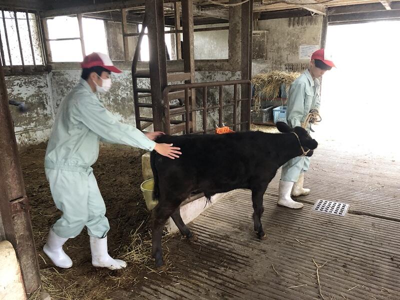 基本はウシや一緒に取り組む生徒に思いやりの気持ちを持つこと。それを原点に生徒は学んでから取り組んだり、取り組みながら学んでいます。