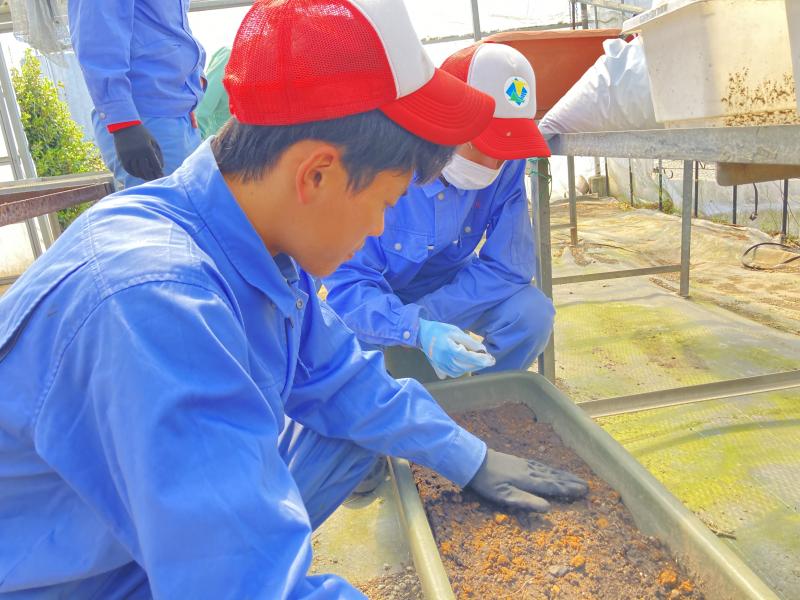 本日は、「ハートのオブジェ」設置に向けて、フウセンカズラの種子を播種する実習を行いました