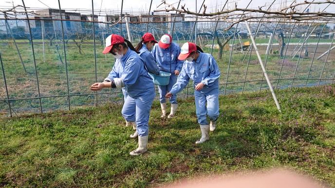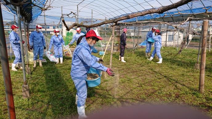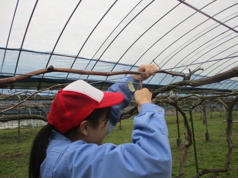 果樹実習風景【総合農業科2年 植物コース】 投稿日時 : 2021/03/05 投稿者2 ブドウ園、モモ園にぼかし肥を散布しました。 今年度新たにアップルキウイフルーツ、ゴールデンキウイフルーツの苗を定植しました。 ブドウハウスに天井被覆ビニールを張りました。 ブドウの萌芽を促すため、結果母枝に芽傷を入れ、液肥を塗布しました。 モモの花も例年よりかなり早く週末には開花見込みです。ブドウの樹木内を水が流れ始めてます。野球より一足早く果樹のシーズンは開幕しました。