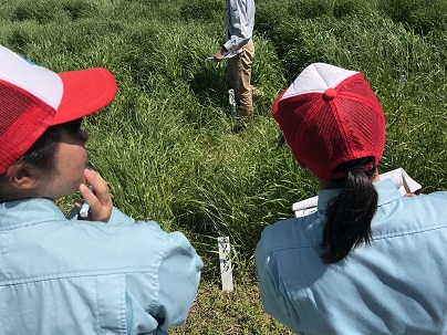 平成30年度春作飼料作物に係る現地検討会参加 投稿日時 : 2018/04/18 作成者1 校外に出て牧草の学習会に参加させて頂きました。栽培する牧草を選定するとき、農家の経営状態や地域の気候・天候によって最適な品種を決めます。百聞は一見にしかず。本やインターネット、パンフレットなどの資料を見るより、球磨地域で実際に育った様々な品種の牧草を実際に見ることで大変学びの深い経験ができました。 球磨郡相良村展示圃場で酪農マザーズの牧草専門家から説明して頂きました。 「イタリアンライグラスの中に、こんなにたくさんの種類があるの?」微妙な違いに驚いている様子でした。 「私より大きい」ライ麦との背比べ。 栄養価?収量?嗜好性?畜産をとおして牧草に興味を持った生徒がいるようです。くま農業活性化協議会、県南広域本部球磨地域振興局、酪農マザーズ、管内畜産農家の方々など現地検討会を実施して頂きありがとうございました。地域の方々のおかげで生徒達は学習する機会を得ることができました。今回学んだことを大切にしながら今後の学習活動につなげていきます。