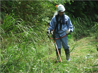「林業就業支援講習会」(7日目) 投稿日時 : 2017/08/08 投稿者3 林業就業支援講習会 くま中央森林組合より、「林業の基礎知識及び安全衛生教育の活用、現場実習」という内容で、現地実習を実施します。 実技では、刈払い機とチェンソーを作業規定通りに操作し林業体験をしました。台風の影響により、1日分の研修を行うことができなかったため、内容の濃い研修となった。
