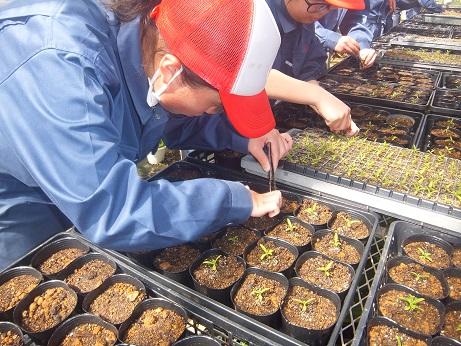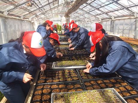 2年生、最初の実習 投稿日時 : 2019/04/12 学校サイト管理者 総合農業科植物コースの2年生が今年度最初の実習を行っていました。実習内容はサルビアや日々草などの苗のポット上げです。慎重な手つきで真剣に取り組んでいました。2年生になるとさすがに動きが全然違います。夏前には苗物として販売します。