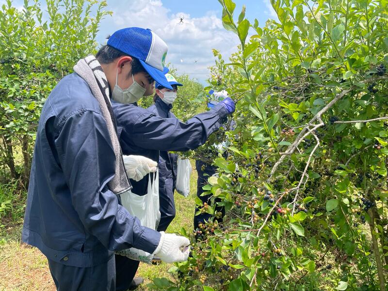 【食品科学科1年生】7.10校外ブルーベリー収穫実習 投稿日時 : 2023/07/11 投稿者5 10日(月)にあさぎり町にある蓑毛ブルーベリー農園にて販売用ブルーベリージャムの原料となるブルーベリーの収穫を行いました食品科学科では、野菜や果物等栽培管理にふれる機会が少ないことから、以前からいちごの栽培管理・収穫に続いてこのうような体験を授業の中で行っています雨もあがり、気温も上昇しましたが、全員が頑張りました。今回も生徒たちの頑張る様子をぜひご覧ください 永井さんは、1人で4kgほど収穫しました黙々とよく頑張りました タグ 食品科学科