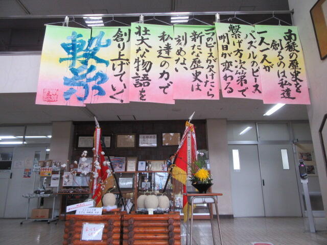 正面玄関に南稜祭で発表した書道部の作品が展示されました。是非ご覧ください。