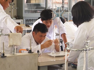 研究授業 投稿日時 : 2018/06/05 学校サイト管理者 中堅教諭等資質向上研修の校内研修として研究授業が行われました。授業内容は実験器具の正しい操作を学ぶもので、普通科と食品科学科の生徒が合同で学びました。普通科の生徒たちは以前に操作経験があり、今回は指導者役として食品科学科の生徒に操作方法を教えていました。お互いに学び合う貴重な時間となりました。