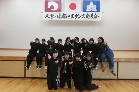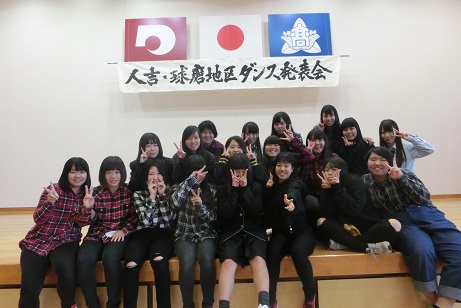人吉球磨地区ダンス発表会 投稿日時 : 2017/12/08 投稿者6 人吉球磨地区ダンス発表会が人吉高校で開催されました。人吉、球磨工業、球磨商業、南稜の4校7作品が演技を行い、本校からは、生活経営科2年生とダンス部の2チームが出場しました。最後に、恒例の写真撮影を行いました。親睦も深まり、充実したダンス発表会になりました。