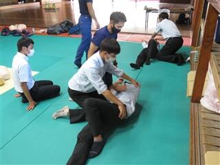 主に心肺蘇生とAEDの使用に関する実技を含めた講習を受けるとともに、気道異物除去、仰臥位から回復体位への体位変換等の実技も行いました。