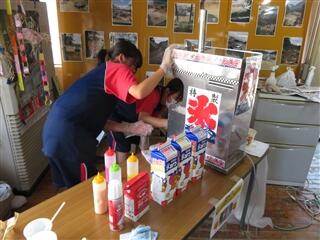 午後は、交替で昼食をとりながら、ホットサンド作りやかき氷作りを行いました。