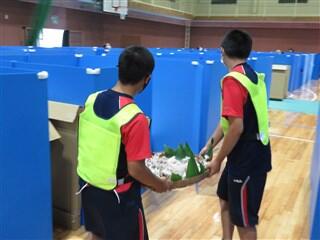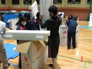 上総合運動公園体育館で行われたあさぎり町の「避難所開設・運営訓練」に、ボランティア部員7人、生徒会役員6人が参加しました。