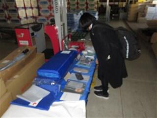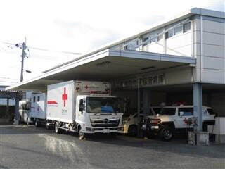 ボランティア部員4人が、日本赤十字社熊本県支部の災害救助物資保管倉庫を見学し、日本赤十字社の災害救援活動について学習しました。