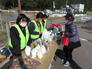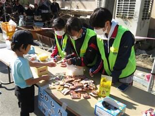 午前中は本校の生徒達は、国道219号線沿いの花壇の花苗植え、ポップコーンの袋詰め、子ども達のダーツの対応、子ども達の駄菓子屋さんごっこの対応、南稜高等学校の農産物の販売の、主に5つのグループに分かれて活動しました。総合農業科から預かったシクラメンとポインセチアの鉢、ロマネスコ、サツマイモ、古代米、小麦粉を販売したところ、全て完売しました。また、おもちゃのお金を持って駄菓子を買いに来た子ども達や、ダーツをしに来た子ども達ともふれあうことができました。