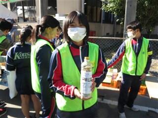 堀之角区ひかり子供会の「空き瓶回収」に、ボランティア部員3人が手伝いとして参加させていただきました。