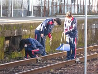 くま川鉄道の部分運行後は今回が初めての実施です。線路沿いが除草作業やレール磨き等によりきれいになった分、タバコの吸い殻やゴミのポイ捨てされたものが目立ってきましたので、今回は駅員さんの御許可によりホーム下に降りての作業となりました。
