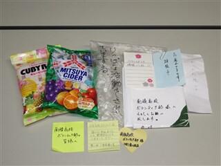 また、地域の方々から励ましや労いの書き置きをいただいたり、差し入れとしてキャンディーをいただいたりしました。寒い中、心が温まりました。ありがとうございました。