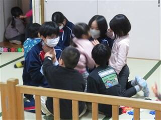 12月も放課後に「るり光保育園」で保護者の方がお迎えに来られるまでの待ち時間を園児達と遊びながら過ごす手伝い訪問活動を3回企画し、実施することができました。ボランティア部員も含めて、8日(水)には4人、15日(水)には5人、22日(水)には4人の生徒達が参加しました。