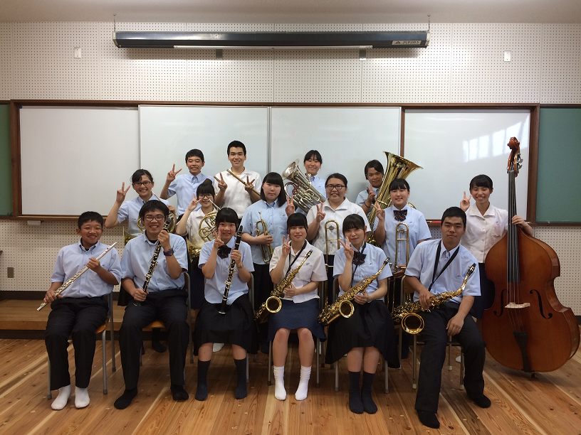 ~吹奏楽部紹介~ 投稿日時 : 2017/06/16 投稿者6 《吹奏楽部》 2017年6月現在、3年生2名、2年生3名、1年生11名で活動しています。コンクールや地域の音楽祭への参加を中心に、日々音楽の楽しさを感じています。未経験者も大歓迎!一緒に音楽を楽しみましょう。<主な行事> 5月:東日本大震災復興チャリティーコンサート 7月:熊本県吹奏楽コンクール 9月:多良木音楽祭10月:錦町音楽祭、体育大会11月:犬童球渓顕彰音楽祭、南稜祭12月:熊本県高等学校文化連盟吹奏楽新人コンクール 3月:定期演奏会